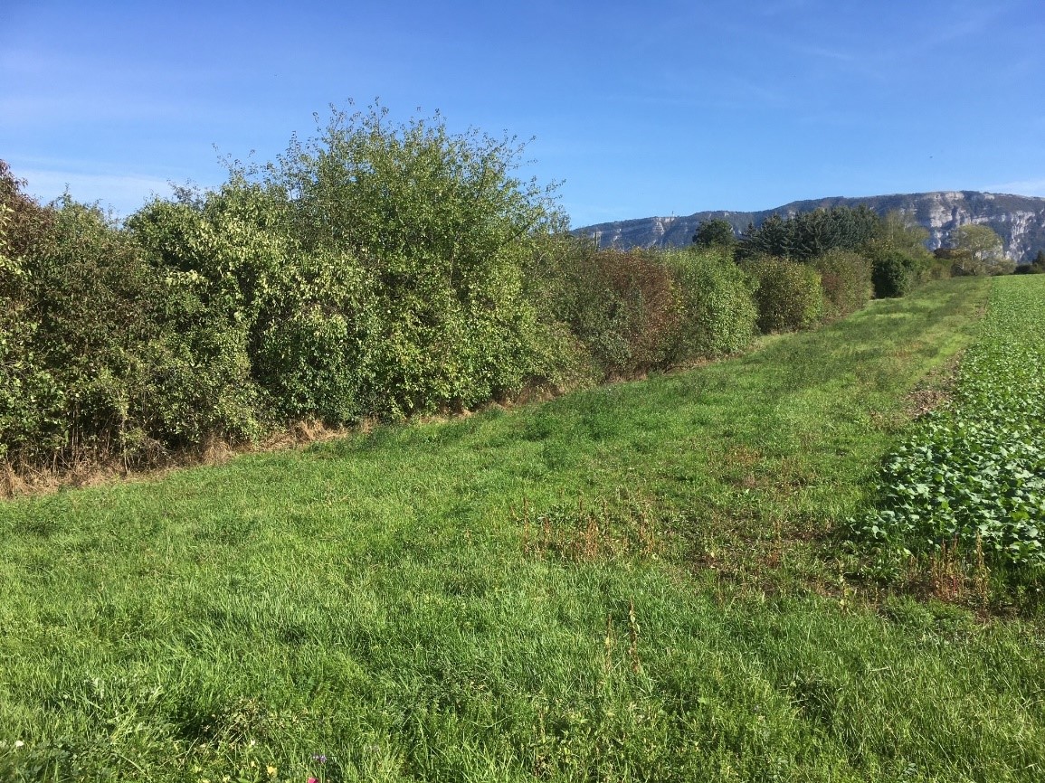 Haie favorisant la biodiversité en zone agricole en 2020, commune de Plan-les-Ouates, photo AgriVulg©